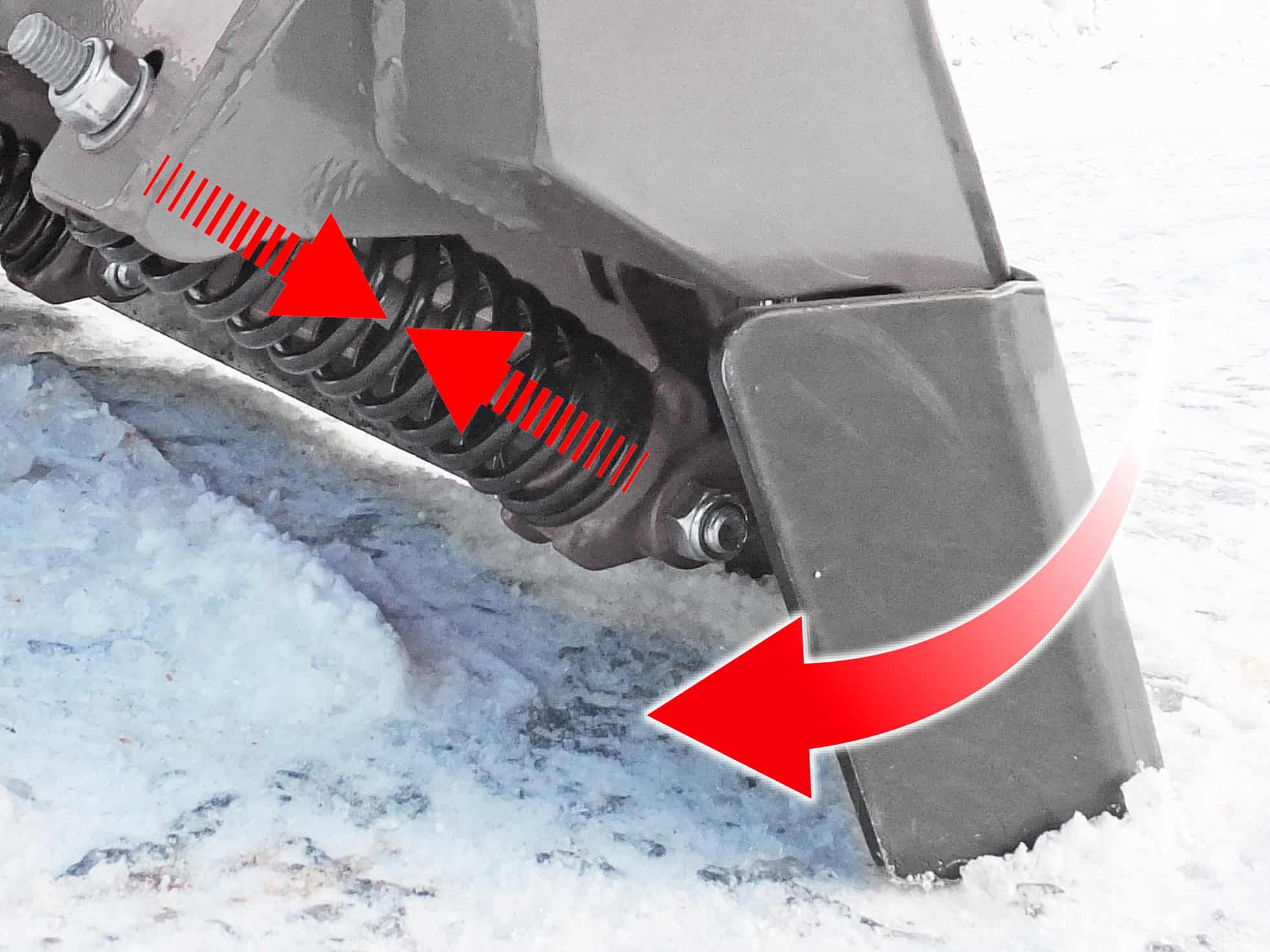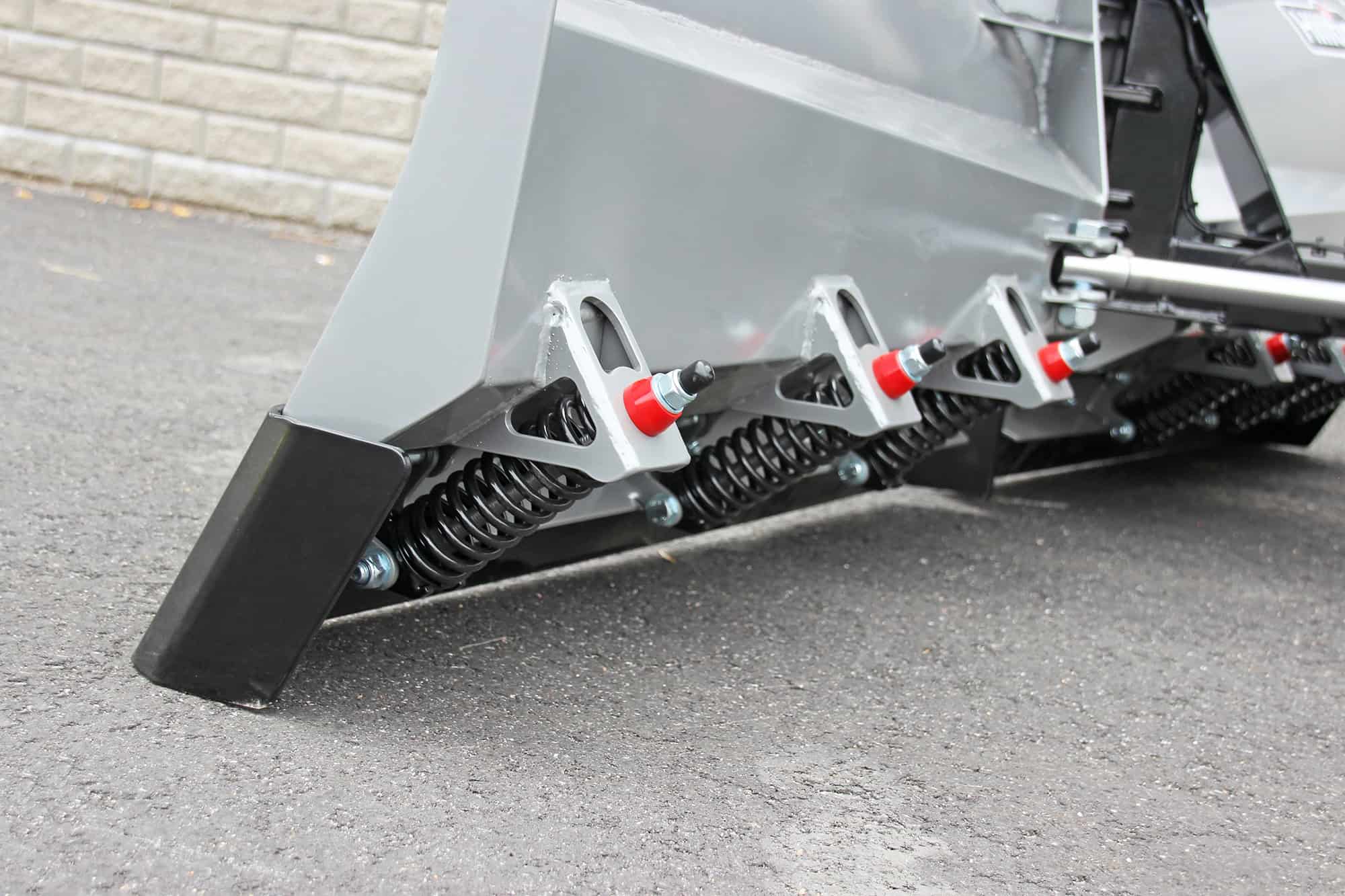 - Sliteskjær med to segmenter med utløsnings-fjærer som beskytter plogen og maskinen når den kommer borti fortau eller andre hindringer. Utløsnings-fjærene på den ene siden av kuttekanten presser seg sammen når den treffer en hindring eller gjenstand, mens den andre delen holder seg på bakken.